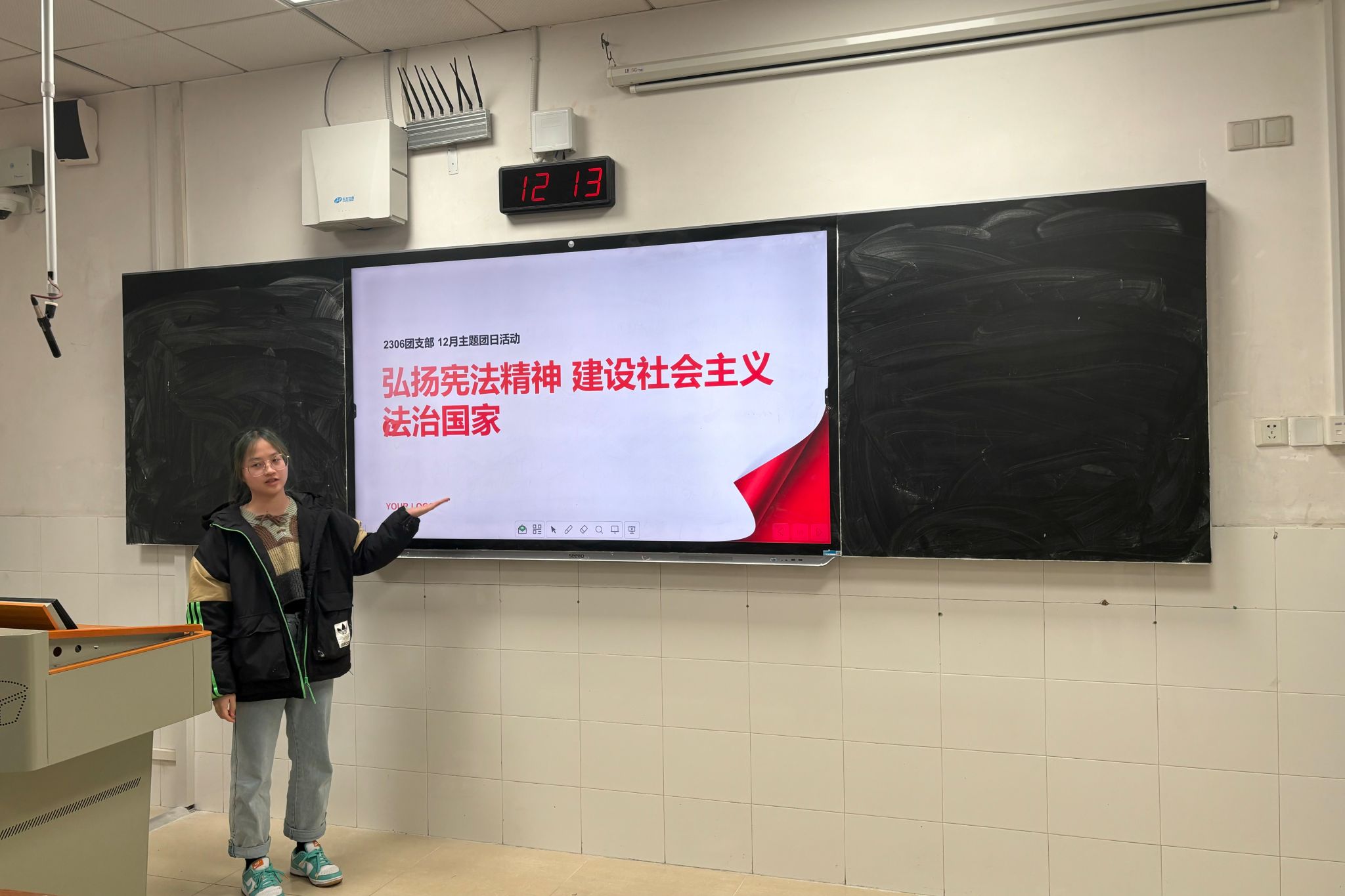 (通讯员 邵菁逸)12月4日12时,万象城awc8882306班在至善楼115教室举行12月团日活动。此次活动由2306班团支书邵菁逸主持。