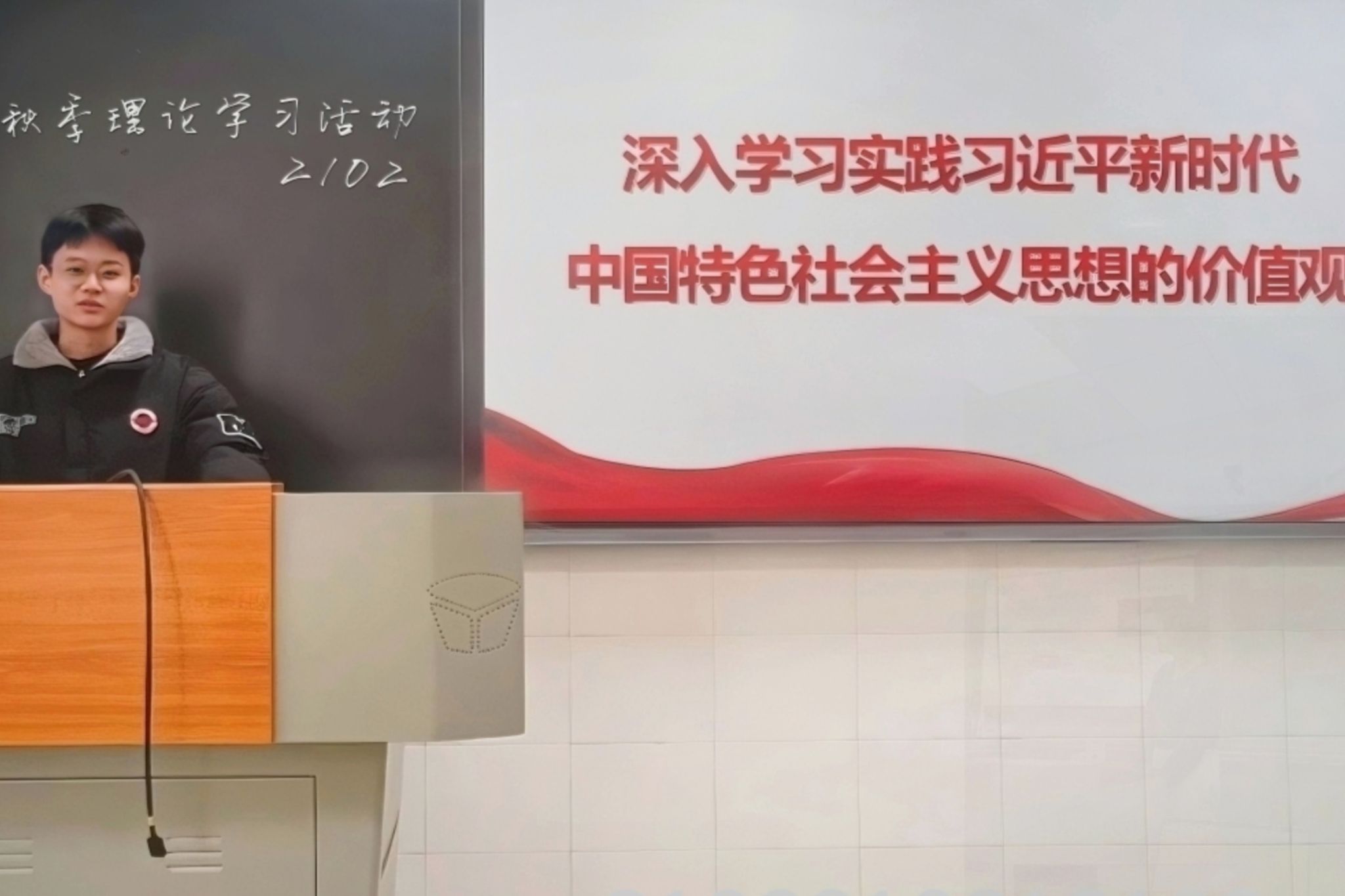 活动开始,组织人徐翔宇讲述了会议的主要内容以及这次理论学习的主要内容。此次活动的主要内容主要包含对习近平新时代中国特色社会主义思想理论的学习、主题知识抢答、相关影片欣赏等三部分。徐翔宇对活动的内容和效果进行了总结,呼吁同学们要高举中国特色社会主义伟大旗帜,坚定道路自信、理论自信、制度自信、文化自信,为全面建设社会主义现代化国家、全面推进中华民族伟大复兴而团结奋斗。