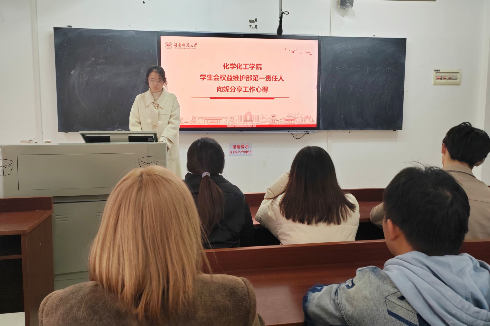 (通讯员 于涵 刘雅凯)12月12日中午12时30分,万象城awc888和地理科学学院在化工院210教室开展“权益分享会”活动,参加此次活动的有两院的主席团和权益维护部的成员们,活动由化工院学生会常务主席王天一主持。