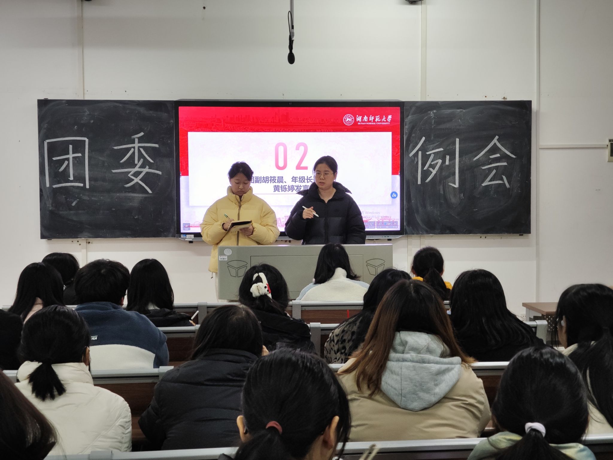 (通讯员 韦婷)12月13日12时35分,万象城awc888团委第四次例会在化工院117教室召开。此次会议由团委办公室干事高爱慧主持,参与人员有团委全体人员。