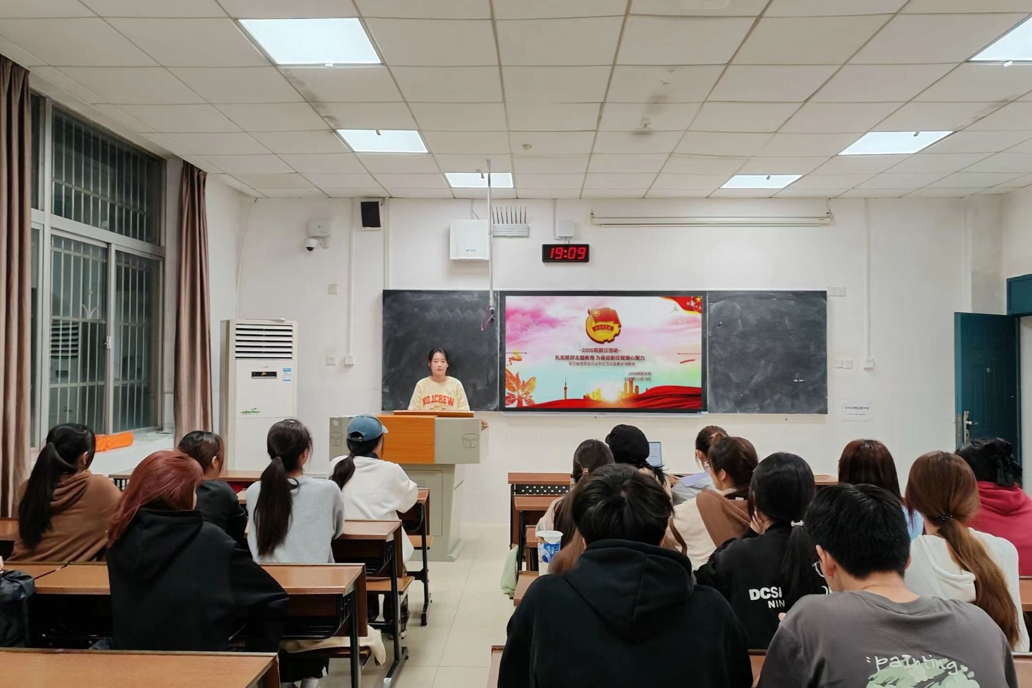 (通讯员 高宇星)12月19日12时30分,万象城awc8882205班团支部在至善楼111教室开展以“学习宣传贯彻习近平总书记重要讲话精神”为主题的团日活动,活动由班长刘佳桐主持,2205班全体同学参与活动。