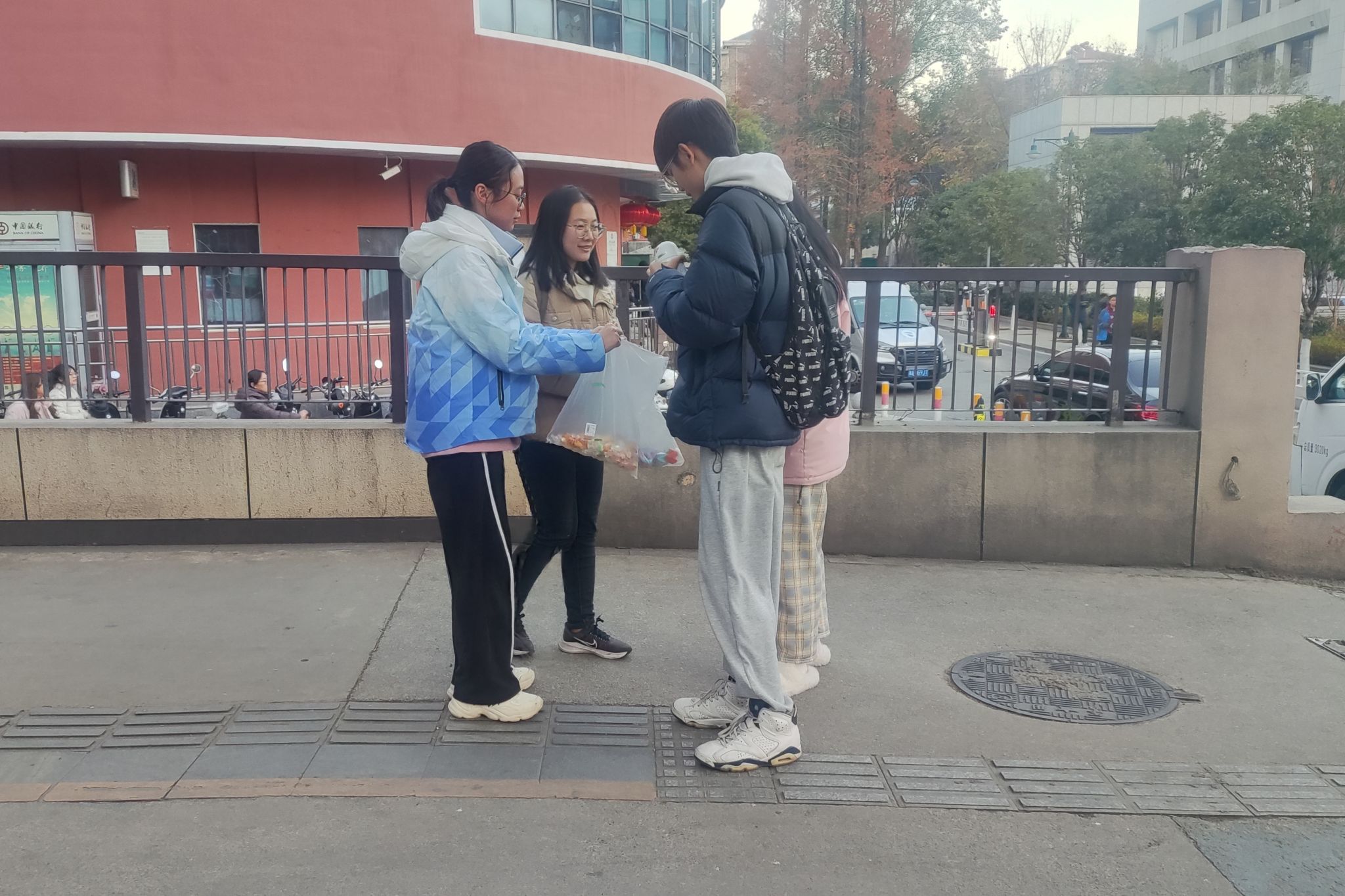 活动开始前,负责书写化学科普小知识的志愿者们和负责折纸的志愿者们在化工院219教室集合,总负责人唐娜妍组织志愿者们完成签到,做好化学知识的书写和折纸工作。负责分发折纸作品及糖果的同学于当天下午六点在化工楼前坪集合,领取糖果和纸鹤后沿着化工楼和图书馆一路,向过路行人送出圣诞祝福,同时向路人科普生活中的化学小知识,揭露学习化学的趣味。