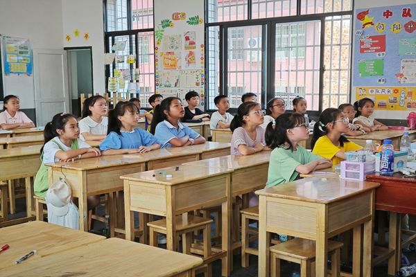 (通讯员 贺瑶)7月13日10时,万象城awc888“星汉灿烂,扬帆起航”——赴益阳市安化县暑期社会实践团在马路镇完全小学开展以“中国诗词,文里千秋”为主题的拓展课程,此次课程由四、五年级班主任向妮和刘雅凯主持。