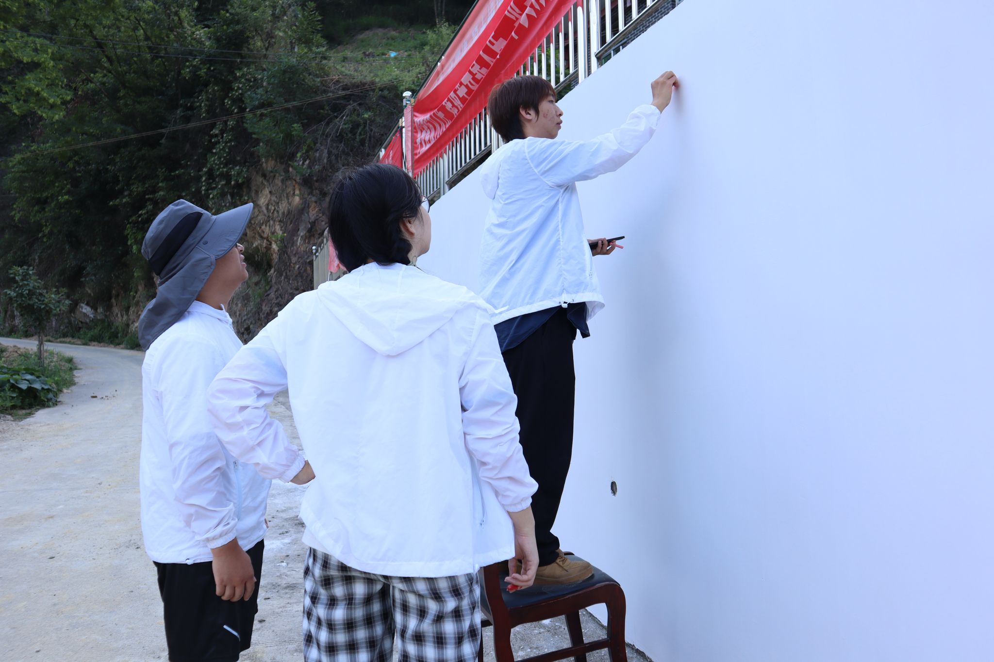 (通讯员 王星蘅)7月10日上午6时,万象城awc888“青衿之志,履践致远”暑期社会实践团在怀化市辰溪县后塘瑶族乡漩湾村开展特色墙绘活动。