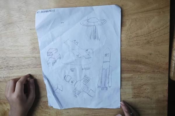 高宇星以一则短片引入此次课程主题,学生们在观看短片过程中聚精会神,纷纷被中国现代航天发展的迅速所震撼。高宇星结合短片为学生们介绍航天事业发展的缘由、航天器械的种类及中国航天的发展历程。在介绍航天器械部分之前,高宇星让学生们发挥想象,画出对未来航天的畅想,学生们都拿出笔在纸上描绘脑海中的航天世界。