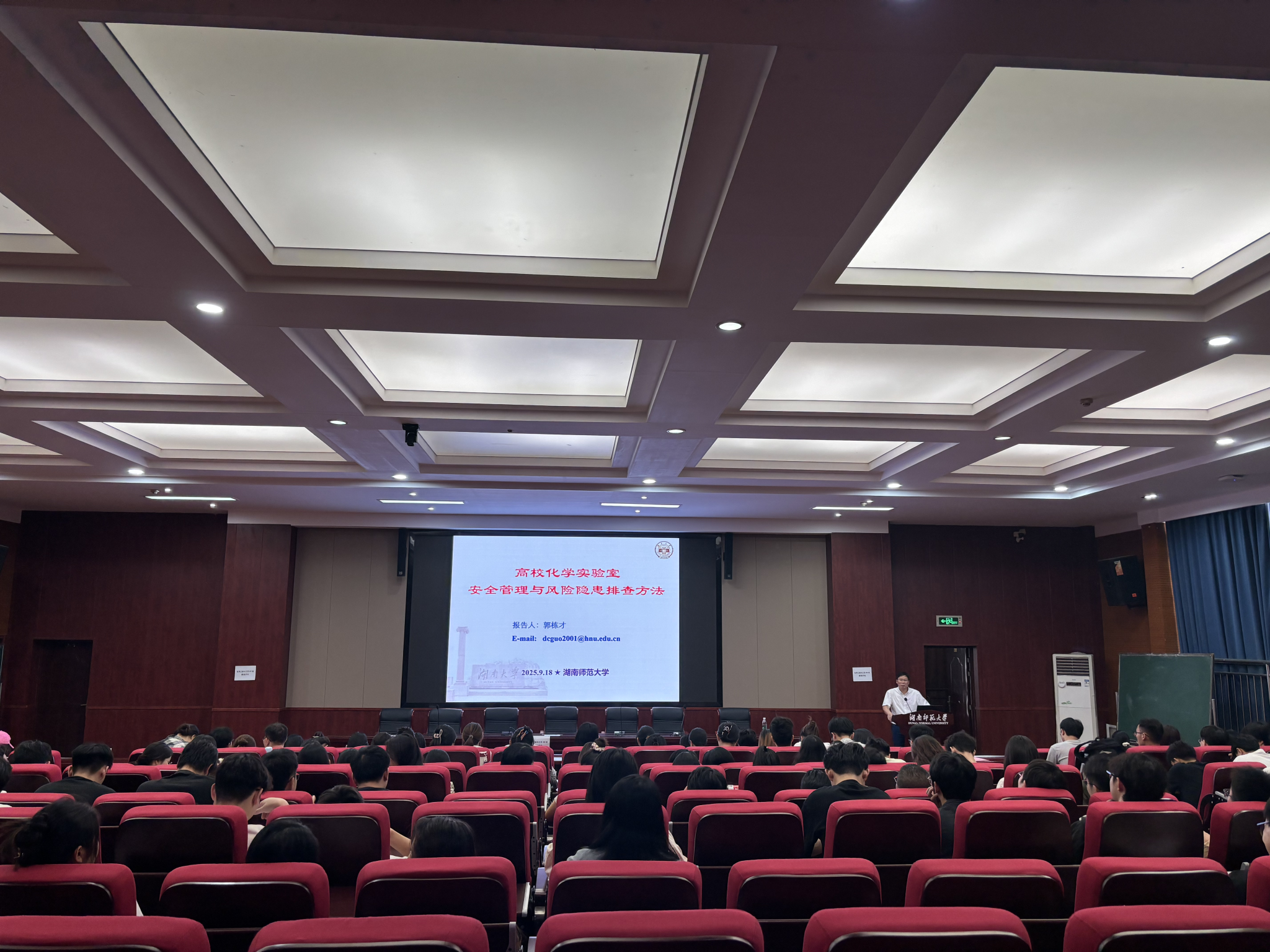 2025年9月18日下午,湖南大学万象城awc888国家级实验教学示范中心主任郭栋才教授受邀来我院,在化学楼达嘉维康报告厅开展安全教育讲座。讲座由研究生办唐建如老师主持,2025级200余名研究生新生参加了此次讲座。