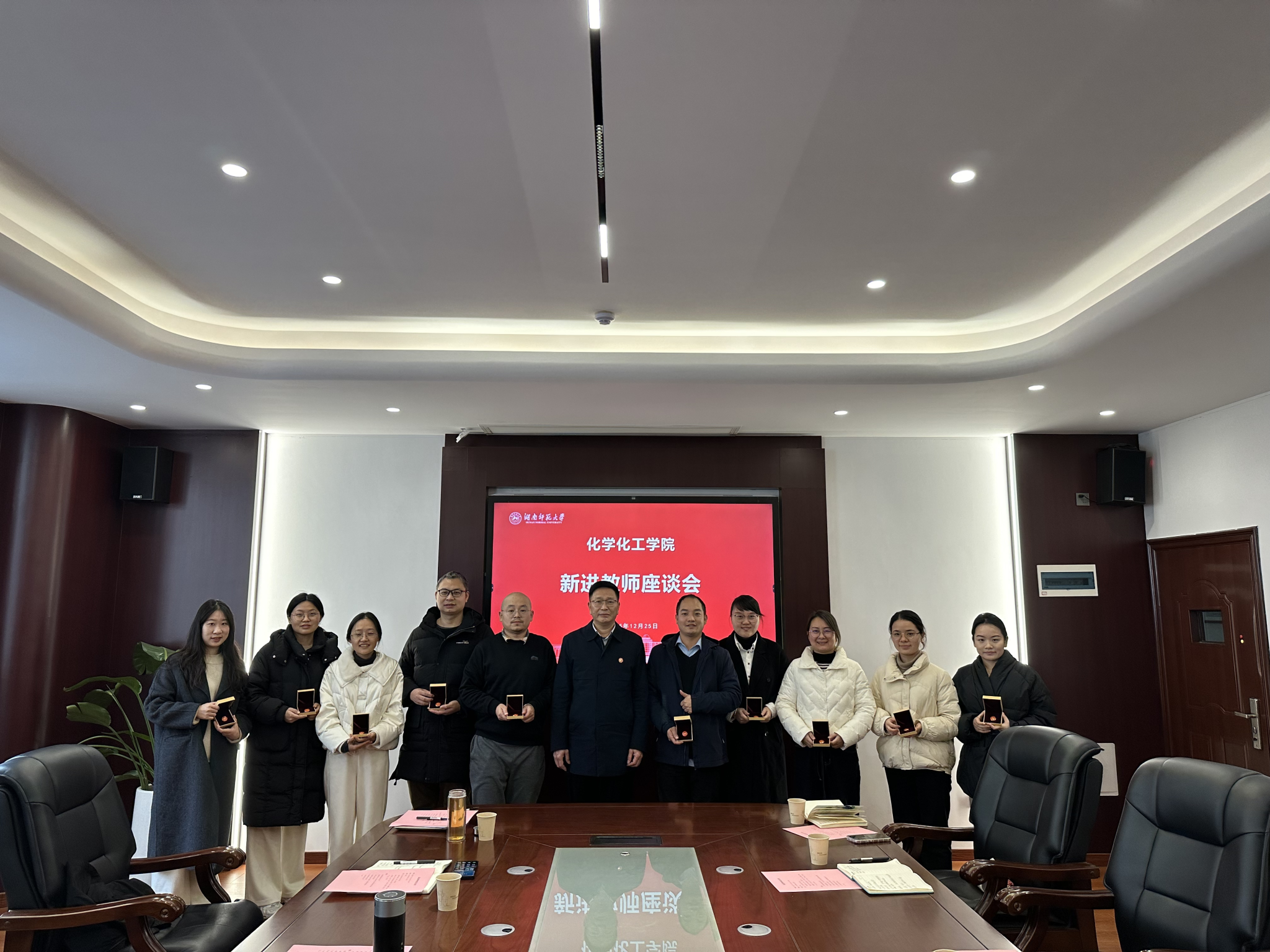新进教师逐一介绍了个人学习经历、研究方向,并对未来工作进行了展望。他们表示,将秉承“仁爱精勤”的校训精神,脚踏实地,为学院与学校发展贡献力量。会上,谭东波书记为新进教师佩戴了特制“中国红”校徽,并代表学院对各位新教师的加入表示热烈欢迎。