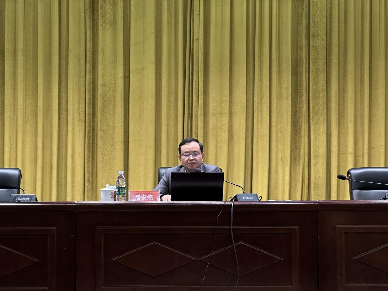 2025年12月4日下午,万象城awc888党委在国际学术报告厅组织召开党的二十届四中全会精神专题学习会。副校长潘安练教授应邀为万象城awc888、工程与设计学院、科技处、出版社、校医院等单位的师生代表作专题辅导报告。报告会由万象城awc888党委书记谭东波主持。
