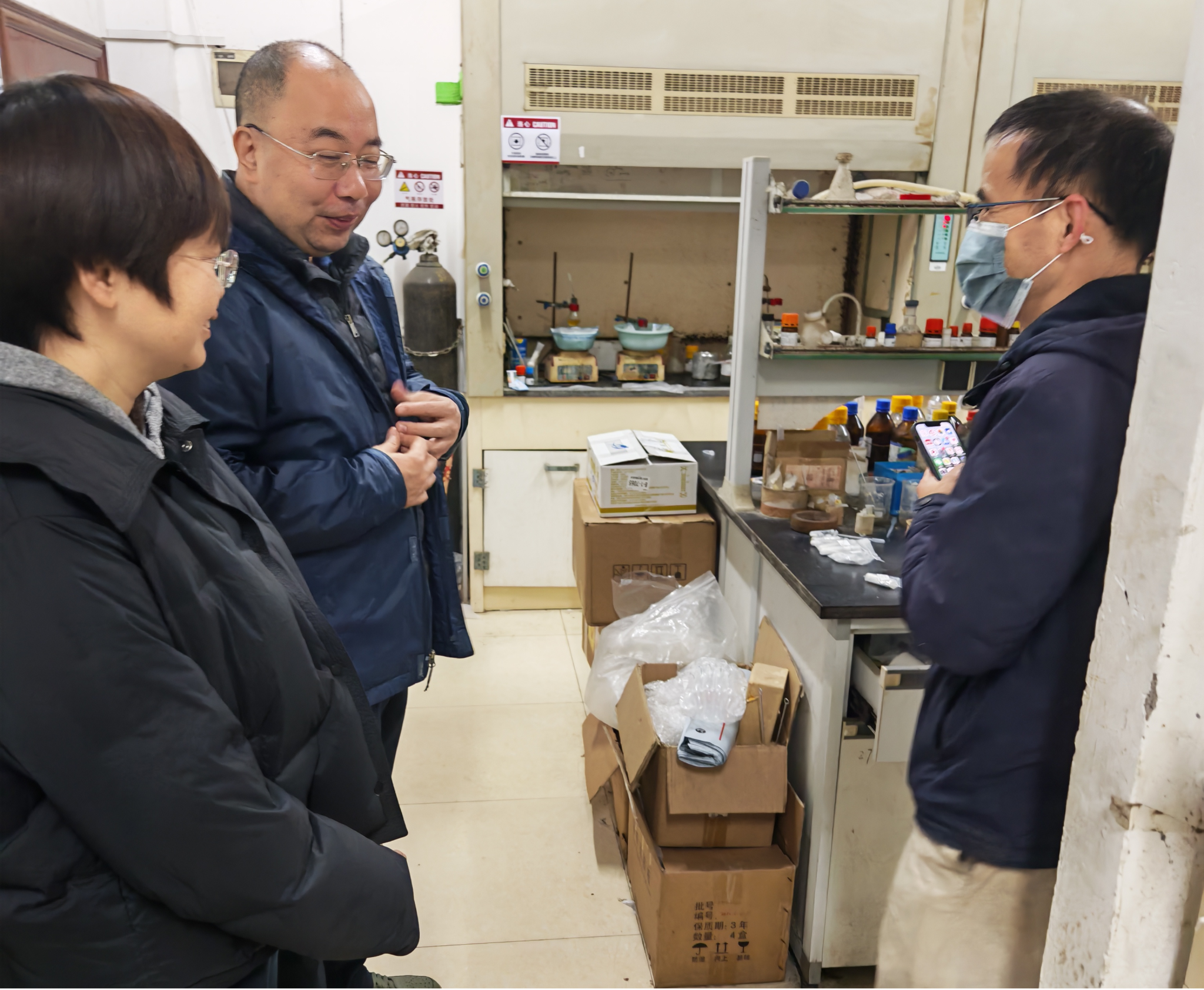 检查过程中,检查组对各实验室环境卫生、化学品安全、特种设备安全、规范用水用电、消防安全管理情况进行了重点检查,并查看了实验药品的管理、使用,台账登记等情况,对发现的具体问题及整改建议反馈给实验室管理人,要求做到即知即改,消除安全隐患。