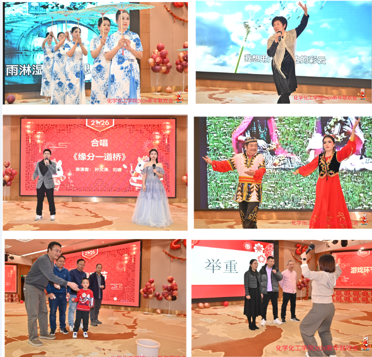 会场布置精美,红火喜庆的装饰与温馨雅致的陈设相得益彰,浓浓的年味扑面而来。16时15分,联欢会正式拉开帷幕。新进教师代表首先登台,深情朗诵了毛泽东主席的《水调歌头·重上井冈山》与《念奴娇·昆仑》,铿锵的词句、真挚的情感,展现了学院新生力量的蓬勃朝气。随后,丰富多彩的文艺节目轮番上演:合唱歌声嘹亮,舞姿优美动人,子弟的武术表演虎虎生风、蓬勃朝气,特别是典雅温婉的旗袍秀,将江南韵致与表演者的绰约风姿完美融合,赢得阵阵掌声与喝彩。活动中穿插的互动游戏与抽奖环节,更一次次点燃现场热情,欢声笑语此起彼伏,将气氛推向高潮。