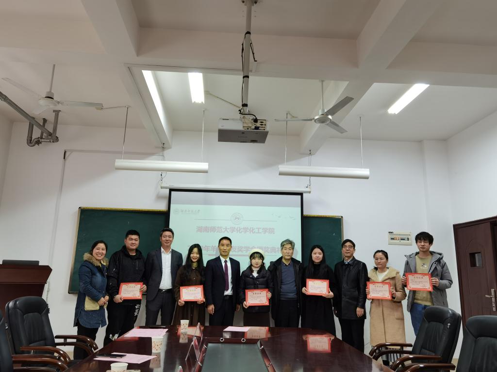 12月11日上午,万象城awc888羊城校友奖学金颁奖典礼在化工院206会议室举行。万象城awc888广州校友会副会长朱精华、校友代表王小淞、学院党委书记于风江、副院长宋建新、党委副书记罗艳、科研办老师及2019及研究生参加此次颁奖典礼。典礼由副院长宋建新主持。