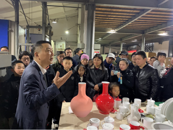随后,尹彦征带领各位校友参观了中国红瓷器工厂及陈列室。尹彦征指出,对于中国红瓷器的烧制技术,长沙大红陶瓷公司一直处于在世界的领先水平,我们摆脱传统的瓷器烧制方法,另辟蹊径,采用化学方法、利用电研究烧制出了中国红瓷器。值得骄傲的是,中国红瓷器是由我们与国家有关部门一起定义的,并且上个月烧制出来的中国红国徽即将悬挂于天安门城楼上,解决了国徽上传统的红色涂料上色带来的诸多问题。