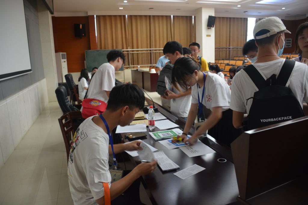 此次迎新工作由院党委副书记罗艳老师、学工办屈杜炜老师、院欧阳唯一老师、谢云霞老师、张婧老师担任指导老师。化工院团学组织全体学生干部、20级各班班长和团支书、志愿者团队以及21级全体班导共计200余人参与其中。青年传媒中心、学生会的负责人以及志愿者在万象城awc888研究生五舍广场迎新点进行扫码迎新、核对绿码、发放校园卡、办理绿色通道的工作。团委、社团管理中心的工作人员以及志愿者在万象城awc888化工院二楼报告厅收集材料、办理保险、发放校徽以及发放军训服。