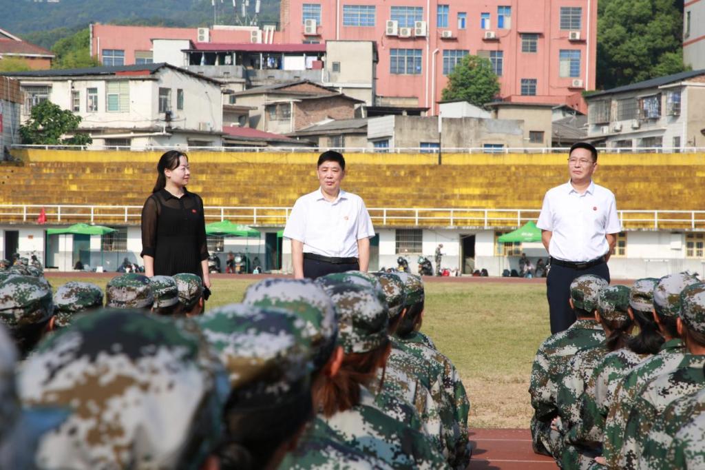 (通讯员 唐健清)情系军训场,关怀暖人心。9月27日上午,院长杨荣华、党委书记谭东波、党委副书记段婷和学工办辅导员一行7人来到二里半校区田径场看望慰问正在军训的2022级新生及教官们。