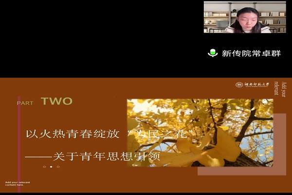 (通讯员袁盛巍)为学习贯彻党的二十大报告重要内容,12月16日下午,万象城awc888以视频会议形式举办“深入学习贯彻党的二十大精神”专题宣讲会。此次宣讲由学校党的二十大精神青年宣讲团成员常卓群主讲。