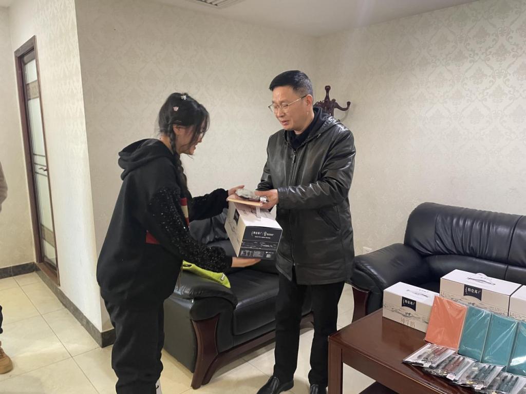 藏族同学们一一进行了自我介绍,并感谢学院和领导老师们的关怀,表示一定珍惜学习机会和大好前途,将自己的所学致力于家乡的经济发展和繁荣。随后,谭东波、段婷代表学院给各位藏族同学送上新年礼物。