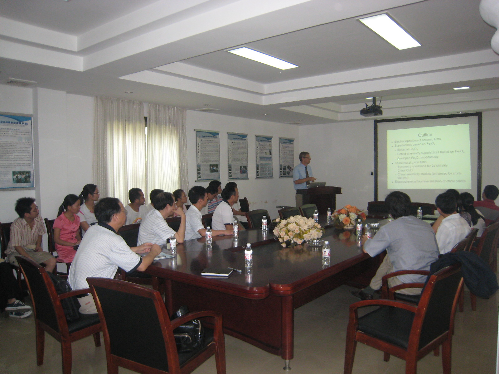 8月22日上午,美国密苏里科技大学Jay Switzer教授在化学生物学及中药分析教育部重点实验室主任谢青季教授的陪同下参观了实验室,10:00在化学生物学及中药分析教育部重点实验室会议室作了题为“Electrodeposition of Ceramic Superlattices and Chiral Films”的学术报告。报告中教授主要从如何用电沉积法制备各种金属氧化物膜、磁性氧化物超晶格以及手性氧化物膜等方面作了精彩讲述。Prof. Jay Switzer的相关研究在Nature (1篇),Science (4篇),JACS,Angew. Chem., Adv. Mater.,Chem. Mater.和Environ. Sci. Technol.等刊物发表。万象城awc888院长尹笃林教授及相关教授和研究生参加了报告和讨论。